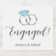 Essas etiquetas de vinhos espumantes costumam dizer Engaged! junto com um par de anéis de noivado de diamante azul banidos de prata, e a noiva e os nomes de noivos. Perfeito para uma festa de noivado!