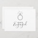 Anuncie o seu noivado com este charmoso cartão com um estilo de desenho animado de um anel de diamante elegante contra um fundo branco minimalista. Fontes de letra script bonitas destacam a mensagem "Estamos Noivos" e os seus nomes, enquanto o espaço abaixo permite personalizar detalhes da festa, data e informações da celebração para se adequar ao seu dia especial. A combinação de ilustração divertida e tipografia sofisticada oferece uma maneira fresca e memorável de compartilhar a sua notícia feliz.
