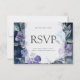 Um design sofisticado e lindo com anêmonas azuis e roxas rodeadas por folhagem verde. O fundo azul escuro tem um aspecto rústico desgastado, criando um contraste maravilhoso com os florais pintados elegantes.