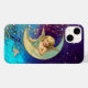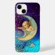 Bronzeado, anjo romântico de olhos azuis pendurado na Lua no pardal-do-ouro, turca quase, azul-aqua, azul-lacre, cor púrpura com pintura mestiça de ouro e folha prateada.