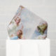 pintura vintage de dois anjos segurando um fio de ouro e tocando um sino metálico no céu.