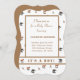 A design personalizada de animais classificados apresenta um belo fundo de animais sortidos. Seu texto é exibido em letras brilhantes contra um suporte branco. Uma faixa na frente mostra a frase personalizável, "É um menino!" Todo texto é personalizável.