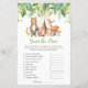 Divirta-se com o preço adivinhando chás de fraldas com vegetação quica e lindos animais tribais de floresta. Basta pressionar o botão personalizar para reorganizar e formatar o estilo e o posicionamento dos textos. Mais jogos de chá de fraldas e itens correspondentes disponíveis no repositório! (c) O feliz Cat Studio.