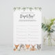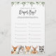Animais da floresta com o tema chá de fraldas palpite que o que está no cartão de jogo de fralda apresenta uma ilustração de animais da floresta em aquarela e verde-aquarela eucalipto garland e uma elegante letra de estilo manuscrito.