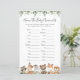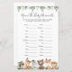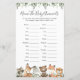 Animais da floresta com o nome do chá de fraldas temido o cartão de caça para bebês animais apresenta uma ilustração de animais da floresta com cor d'água e verde-d'água eucalyptus garland e uma elegante letra de estilo manuscrito.