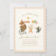 Celebre o seu pequeno dia especial com este encantador primeiro convite de aniversário que inclui animais de floresta brancos em chapéus de festa. Um urso cavalgando um monociclo, um coelho com balões, e um gambá soprando uma buzina criam uma cena lúdica inspirada no circo. Perfeito para uma floresta, circo ou festa de aniversário com tema animal. Personalize com o nome do seu filho e os detalhes da festa para uma celebração memorável!