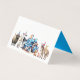 Cartões dobrados de vazio com design de animais de exploração. Use uma festa de aniversário para designar assentos ou na mesa da comida para descrever os itens do menu. As placas são brancas na frente com um trator azul e animais de galeria vestindo chapéus de festa. Adicione o texto acima do design. Os cartões vêm em embalagens de 25.