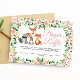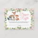 Use estes cartões de inserção de convite para convidar convidados de chá de fraldas a trazer um pacote de fraldas para uma chance de ganhar um prêmio no chá. O design de chic apresenta uma aquarela de animais e flores cor-de-rosa pinceladas e espaço para os hóspedes preencherem o seu nome ao enviar o seu bilhete de rifa. Projetado para combinar com nossa coleção Woodland Animal e Flores Rosa Escamoteadas.