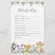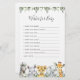 Os animais Safari têm o tema desejos de chá de fraldas para cartões de bebês com uma ilustração de safari de cores aquáticas e uma imagem verde-aquarela eucalipto garland e uma elegante letra de estilo manuscrito.