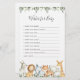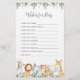 Os animais Safari têm o tema desejos de chá de fraldas para cartões de bebês com uma ilustração de safari de cores aquáticas e uma imagem verde-aquarela eucalipto garland e uma elegante letra de estilo manuscrito.