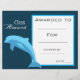 Um prêmio de certificado de prêmio de classe na moda moderna com uma imagem fofa de golfinho perfeita para encorajar um jovem estudante. Você pode escrever em seus próprios detalhes. Um recurso de excelente para qualquer tipo de professor de sala de aula.