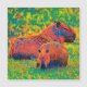 Retrato gráfico colorido de uma mãe de capybara com o seu bebê