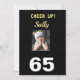 Comemore seu aniversário de 65 anos com uma carta "Anime-se!". Ela sorrirá para a engraçada garota rabugenta e apreciará o verso feliz na parte de trás do cartão. As cores preto e amarelo pop com estilo em moda. A design moderna mostra o sentimento alegre por um aniversário marcante de uma mulher.