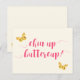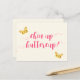 NovoParqueCaminho - Cartão postal, com borboletas amarelas fofas e citação doce: "Queixo erguido, botão-de-ouro!" em tipografia elegante de rosa quente.