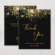 Um cartões de agradecimentos para um aniversário de 50 anos (ou qualquer idade). Uma cor preta de fundo, decorada com uma falso brilho dourado. Na frente, um grande script colorido à mão e o texto: Obrigado, seu texto, título e uma data. Back: Modelo para sua nota de agradecimento e seu nome.