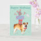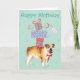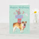 Saudações de aniversário felizes com este design bonitinho que apresenta um belo Bulldog balanceando uma pilha de presentes em suas costas.O texto pode ser facilmente alterado; basta clicar no botão personalizar.