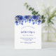 Um fundo branco, decorado com flores azuis e brancas. Personalize e adicione seu nome e detalhes. Fundo: fundo azul. 1 folha = 1 convite impresso de borda a borda.