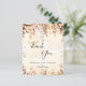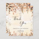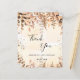 Um cartões de agradecimentos para um aniversário de 50 anos (ou qualquer idade). Um fundo de cor aquosa de ouro decorado com ouro eucalipto e farelos de brilho dourado. Na frente, um grande script de cor preta, escrito à mão, e o texto: Obrigado, seu texto, título e uma data. Voltar: Personalize e adicione seu nome e nota de agradecimento.