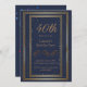 Aniversário Convite Elegante Marinho Azul 40º Dour