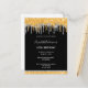 Um convite moderno, na moda e glamouroso para a 50ª festa de aniversário (ou qualquer idade) de uma jovem. Um fundo preto chic com um elegante ouro falso e um brilho prateado, pintura pingando. Personalize e adicione um nome e detalhes da parte. O nome é escrito com um script de estilo manuscrito de tendência. Letras cinzas leves. Dica: Se você não quiser que pareça um cartão postal, clique em personalizar, vá para o verso e remova o divisor e o carimbo de posto.