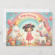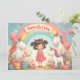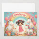 Adorável design de aniversário com unicórnios, um arco-íris, presentes e uma garota sorridente - perfeito para produtos, convites para crianças ou decoração infantil.