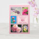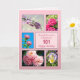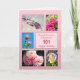 Cartão de aniversário de 101 ruas. Mande lindas flores para uma pessoa bonita. Um cartão de aniversário com um belo sentimento. Uma coleção de imagens enquadradas de flores em um fundo rosa.