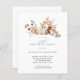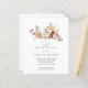 Abóbora branca moderna e elegante e flores de queda design floral. A paleta de aquarelas moles é uma sofisticada mistura de cor-de-rosa macio e ouro amarelo e castanho rico em escuro. A queda deixa à volta da abóbora branca para uma apresentação especial no outono. Perfeito para a sua festa de aniversário de outono.