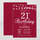 aniversário de 21 anos com luzes de cordas. Fundo Vermelho Burgundy. 13 15 16º 18º 20 21rua 30 40º 50º 60º 80 de 70 100º, qualquer idade. Para mais personalização, clique no botão "Personalizar" e use nossa ferramenta de design para modificar este modelo.