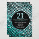Convite para aniversário de 21 anos. Glitter Preto e Teal. Teal Diamond. Festa de aniversário adulta. Para Homens ou Mulheres. Para mais personalização, clique no botão "Personalizar" e use nossa ferramenta de design para modificar este modelo.