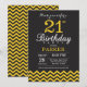 Convite para aniversário de 21 anos com Chevron Preto e Amarelo. Chalkboard. Aniversário Adulto. Convidam o Homem ou a Mulher Bday. Para mais personalização, clique no botão "Personalizar" e use nossa ferramenta de design para modificar este modelo.