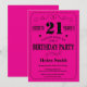 Tipografia Preta e Rosa Quente do Convite para aniversário de 21 anos. Fundo preto e rosa quente. Aniversário Adulto. Homens ou Mulheres Aniversário. Menino ou Menina Menina Menina Adolescente Convidam. 13 15 de 16º 18º 20 21rua 30 de 40º 50º 80 de 60º 70 de 100º. Qualquer Idade. Para mais personalização, clique no botão "Personalizar" e use nossa ferramenta de design para modificar este modelo.