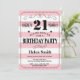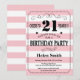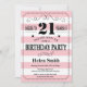 Tipografia do aniversário de 21 anos Invitation Pink and White Stripes. Alegra-me a 21 anos. Aniversário Adulto. Homens ou Mulheres Aniversário. Menino ou Menina Menina Menina Adolescente Convidam. 13 15 de 16º 18º 20 21rua 30 de 40º 50º 80 de 60º 70 de 100º. Qualquer Idade. Para mais personalização, clique no botão "Personalizar" e use nossa ferramenta de design para modificar este modelo.