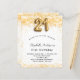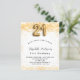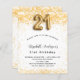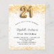 Para uma aniversário de 21 anos elegante. Um fundo branco chic. Decorado com brilho de ouro falso, brilhos. Personalize e adicione um nome, idade e detalhes da festa. O nome é escrito com um script de estilo manuscrito. Número 21 com letra de estilo de balão.