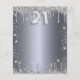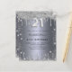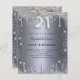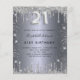 Um convite moderno, na moda e glamouroso para um aniversário de 21 anos. Um fundo com aparência de prata falsa, decorado com poeira brilhante. Personalize e adicione seu nome e detalhes da festa. O número 21 é escrito com uma fonte de estilo balão, script.
