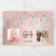 Para uma festa de aniversário de 21 anos, celebrando sua vida com uma colagem de 5 fotos suas. Personalize e adicione um nome, 21 anos e uma data. Data de nascimento ou data da festa. Rosa dourado e letras coloridas de cinza escura. Um fundo de cor rosa dourado da tendência, decorado com pingos de brilho sujo, gotejamento de tinta com aspecto cor-de-rosa, ouro rosa e prata.