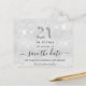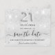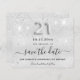 Uma moeda e uma tendência Salve a placa de Data para um aniversário de 21 anos. Um fundo moderno, de aparência fina, decorado com poeira falsa brilhante. Personalize e adicione uma data e nome/idade. Letras coloridas de cinza. O texto: Salvar a Data é gravado com um script de estilo com letra de tendência grande. Número 21 com uma fonte no estilo do balão.