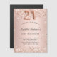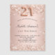 Um convite para um aniversário de 21 anos elegante. Um fundo de gradiente rosa ouro. Decorado com rosa dourado falso poeira brilhante. Personalize e adicione um nome e detalhes da parte. O nome é escrito com um script de estilo manuscrito. O número 21 é escrito com uma fonte no estilo do balão. Tanto um convite como um lembrete Salvar a Data para seus convidados!