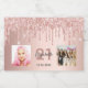 Para uma festa de aniversário de 21 anos, celebrando sua vida com uma colagem de 5 fotos suas. Personalize e adicione um nome, 21 anos e uma data. Data de nascimento ou data da festa. Rosa dourado e letras coloridas de cinza escura. Um fundo de cor rosa dourado da moenda decorado com pingos de brilho sujo, pingos de tinta parecem cor-de-rosa e rosa.
