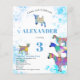 Que a festa comece com esta coleção divertida de aquarelas de ilustrações coloridas de aquarelas de cabras em rosa vibrante, roxo, azul, laranja, amarelo e aqua. Um convite público para aniversário de 3 anos de animais de criação bonitos, com cabras e cabras de bebê em cabra. Este convite de festas divertido é fácil de personalizar para criar um convite de festas único adequado para crianças e amantes adultos de cabras. Ilustrações originais de cabra psicodélica colorida da artista Catherine Sweetman