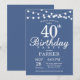 aniversário de 40 anos com luzes de cordas. Fundo Azul. Homens ou Mulheres Aniversário. 13 15 16º 18º 20 21 rua 30 40º 50º 80 de 60º 70 de 100º, qualquer idade. Para mais personalização, clique no botão "Personalizar" e use a ferramenta design para modificar este modelo.