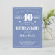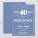 Tipografia Azul e Branca de Convite para aniversário de 40 anos. Fundo Azul e Branco. Aniversário Adulto. Homens ou Mulheres Aniversário. Menino ou Menina Menina Menina Adolescente Convidam. 13 15 de 16º 18º 20 21rua 30 de 40º 50º 80 de 60º 70 de 100º. Qualquer Idade. Para mais personalização, clique no botão "Personalizar" e use nossa ferramenta de design para modificar este modelo.