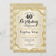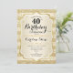 Convite de festas aniversário de 40 anos. Design elegante em ouro. Apresenta fitas de ouro com brilho sutil, fonte de script na moda e confetti. Perfeito para uma comemoração de glam.