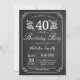 Convite para aniversário de 40 anos com fundo de quadro chalkboard russo e padrão floral de flores, preto e branco. Aniversário Adulto. Homens ou Mulheres Aniversário. Menino ou Menina Menina Menina Adolescente Convidam. 13 15 de 16º 18º 20 21rua 30 de 40º 50º 80 de 60º 70 de 100º. Qualquer Idade. Para mais personalização, clique no botão "Personalizar" e use nossa ferramenta de design para modificar este modelo.