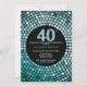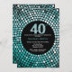Convite para aniversário de 40 anos. Glitter Preto e Teal. Teal Diamond. Festa de aniversário adulta. Para Homens ou Mulheres. Para mais personalização, clique no botão "Personalizar" e use nossa ferramenta de design para modificar este modelo.