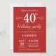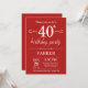 aniversário de 40 anos com fundo vermelho. Aniversário Adulto. Homens ou Mulheres no Dia Convidam. 13 15 16º 18º 20 21rua 30 40º 50º 60º 80 de 70 100º, qualquer idade. Para mais personalização, clique no botão "Personalizar" e use nossa ferramenta de design para modificar este modelo.