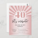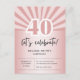 Traga um brilho para a sua festa de aniversário de 40 anos com este design em cores de ouro rosa. Fácil para você personalizar com todos os detalhes do evento! Sombras de rosa e cor-de-rosa pastel em listras de sol, lembrando o estilo de safra dos anos 60, mas com uma borda moderna. Número "40" em caracteres de vintage picante e as palavras "celebrar vamos" em uma fonte de caligrafia manuscrita contemporânea, além de campos editáveis para seu próprio conteúdo.