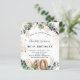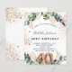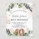 Para uma festa de aniversário de 40 anos. Um fundo branco decorado com verde de eucalipto e folhas de ouro. Pontos de brilho falsos do ouro. Personalize e adicione seus nomes e detalhes do casamento. Letras pretas e ouros coloridas. O número 40 é escrito com a fonte do estilo do balão. Traseira: fundo branco e pontos brilhantes de falso ouro.