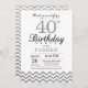 aniversário de 40 anos com Silver Glitter Chevron. Negra e Silver Glitter. Aniversário Adulto. O Dia do Homem ou da Mulher Convidam.