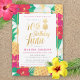 Convites de aniversário de 40 anos cor-de-rosa e ouro com flores tropicais bonito e divertidas e abacaxis, com sotaques dourados. Perfeito para um luau temido de quarenta anos de besta!