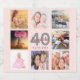Uma etiqueta para uma festa de aniversário de 40 anos, celebrando sua vida com uma colagem de 8 fotos suas. Personalize e adicione um nome, 40 anos e uma data. Data de nascimento ou data da festa. Cinza e letras coloridas rosa de ouro escuras. Um rosa dourado feminino e feminino, fundo cor-de-rosa pincelado.